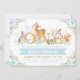 Boy Woodland Animals Blue Gold Floral 1st Birthday Invitation