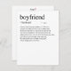 Add some humor and style to your Valentine's Day gift with this funny "Boyfriend Definition" card. Featuring witty, minimalist typography and a clean look, it delivers a fun, lighthearted message that’s sure to make your significant other smile. There’s also a blank space where you can include your personalized handwritten message for him. Want a custom, witty characteristic added to the definition? Reach out to me at: shahirah.creates92@gmail.com, and I’ll make it uniquely yours.