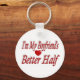 Keychain with I'm my boyfriend's better half in 3D red letters.