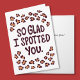 Our boyfriend's Valentine's Day Card, with the words 'So Glad I Spotted You,' is an ideal way to express your affection for your boyfriend. With its original lettering design and playful pattern of leopard spots, this card is sure to make your loved one feel cherished and valued. Its modern style is perfect for him. You can personalize the message, adding a heartfelt touch to your sentiment.