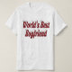 Shirt with World's best boyfriend in 3D burgundy text. Shirt available in several styles and colors with long or short sleeves.