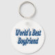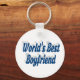 Key chain with World's Best boyfriend in 3D sea blue text. Round and square key chains available in several sizes.
