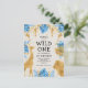 Boys 1st Birthday Party Blue Ecru Safari Invitation Postcard