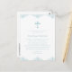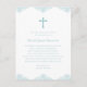 This blue and white boys baptism invitation postcard features a pastel blue cross and a decorative blue design at the top and bottom. The blue text can be changed to suit a First Communion or a confirmation. Add your return address to the back, and any additional text if desired.