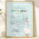 This cute boys 1st birthday milestone poster features one silly goose with a blue party hat, with a blue gingham border, and can be personalized with details of your child’s first year in colorful typography. Details include first favs, height, weight, number of teeth, and first achievements. The perfect farm design to celebrate your little one's first year!