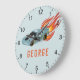 Boys Blue Hot Flames & Racing Car Kids Room Large Clock