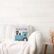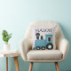 Decorative children's throw pillow featuring a blue and gray train on a chevron pattern background - personalize it with child's name for a unique gift idea.
