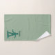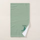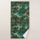 Boy's bath towel set done in a camouflage theme of Kelly green, forest green, brown and light green. The hand towel is done in a light green with graphics of a green toy solider and custom dark green text. Personalize this popular kid's towel set, to read what you want.