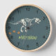 This cool and modern boys clock features a t-Rex dinosaur skeleton. The clock can be personalized with your child’s name, and has clear readable numbers. The perfect prehistoric dinosaur dig themed decor for your kids room or nursery.