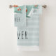 This cute bathroom towel set design features a modern boat illustration on pastel blue stripes and can be personalized with your boy's name. The perfect nautical gift for any toddler, child, or ocean lover!