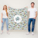 This cute and modern kids fleece blanket features a blue construction pattern, with a yellow digger, cement mixer, stop sign, crane and traffic lights. The cozy blanket can be personalized with your boys name and monogram. The perfect builder themed gift for any construction lover!