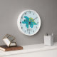 This cute and modern kids clock features a blue dinosaur cartoon, and can be personalized with your boys name. The perfect dinosaur-themed addition to your kids room or baby boys nursery. Great for dino lovers!