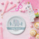 This cute and modern blue boys baby shower paper plate design features cute safari elephant, and can be personalized with the parent's names and the date of your shower. The perfect gender neutral jungle safari themed addition to your co-ed couples boys baby shower.