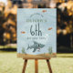 The sign includes space to personalize your child’s name and age in a clean, minimalist script. A matching shark pattern appears on the back, tying the whole under-the-sea theme together. Perfect for a 6th birthday, but fully customizable for any age — ideal for little ocean lovers big and small!