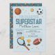 Boys Cute Blue Sports Superstar Kids 2nd Birthday Invitation