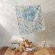This cute and modern monogrammed baby boy blanket features a pastel blue dinosaur cartoon pattern, with a t-rex, stegosaurus, rainbows and jurassic jungle plants, and can be personalized with your boys name and initial. The perfect customisable jungle dinosaur themed gift for your next baby shower.