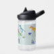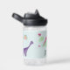 This cute and modern kids water bottle design features a blue dinosaur cartoon with a t-rex, triceratops, and other cute jungle designs. The bottle can be personalized with your boys name. The perfect dinosaur-themed addition to your kids school supplies, perfect for kindergarten or preschool.