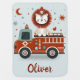This personalized baby blanket is sure to become a treasured companion for your little one. Featuring a whimsical lion bravely driving a bright red fire truck, this cuddly blanket sparks imagination and inspires adventure. Sparkling stars twinkle across a soft blue sky, creating a calming scene. Personalize the blanket with your baby's name for a truly unique gift!