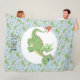 Boys Cute Green Dragon Cartoon Pattern & Name Kids Fleece Blanket