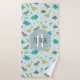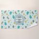 This cute and modern blue kids bath towel set features a dinosaur cartoon pattern, with a t-rex, stegosaurus, and Jurassic jungle plants, and can be personalized with your boys name and monogram. The perfect dinosaur-themed gift for your baby, toddler, or child!