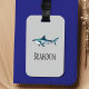 Make travel extra fun with this cool gray shark luggage tag — perfect for kids of all ages! Featuring a watercolor shark graphic and personalized name on the front, this tag adds personality and style to backpacks, carry-ons, suitcases, school bags, sports bags, and more. The back includes customizable contact information.