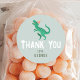 These cute and modern boys’ birthday Favor stickers feature a friendly T-Rex, perfect for any little dino lover, and the text ‘thank you’.