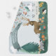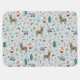 This cute and rustic monthly growth tracker milestone baby blanket features an adorable woodland animal illustration, with a deer, hedgehog, badger, mushroom, and chic greenery, and space to add your boy or girl's name in simple typography. On the reverse of the blanket is a matching blue forest pattern. The perfect gender-neutral design for any baby nursery or baby shower!