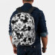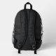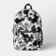 This fun and sporty soccer backpack features realistic, varied size black, gray & white soccer balls turned every which way in a 3D-look pattern on a black background - customize with the soccer player's monogram - by katz_d_zynes