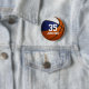 This custom team colors basketball button for boys or girls features the realistic image of a basketball that has two recolored panels--one blue and one white - personalize with the athlete's name and jersey number in a varsity letter style font - by katz_d_zynes