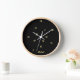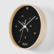 Custom, personalized, modern, unique, boho, contemporary, fun crazy whacky jumbled numbers / hours faux gold script / typography on black background acrylic round wall clock with high-impact plexiglass crystal face and natural wood frame, for your nursery, kitchen, living room, bathroom, kids corner, home, office. Its hours all appear to be jumbled, crazily placed, but amazingly it works. Simply type in your name / the name of bride & groom / husband & wife / family name, to customize. Makes a great custom gift for birthday, wedding, anniversary, holidays, christmas, new years, and more, for your loved ones, mom, dad, brother, sister, son, daughter, husband, wife, bride, groom, grandpa, grandma, family and friends.