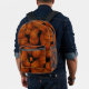 This fun and sporty basketball backpack features a random pattern of varied size basketballs turned every which way on a black background - customize with basketball player's monogram - by katz_d_zynes
