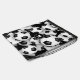 This personalized soccer balls pattern drawstring backpack for boys or girls features a pattern of varied size soccer balls turned every which way on a black background - customize with athlete's monogram - by katz_d_zynes