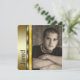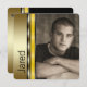 Classic boys black and gold photo graduation announcements. Customize with your photo and event details, font style, font size & color, and wording.