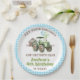 Boys Green Blue Balloons Tractor Birthday Paper Plate