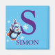 Boy's initial skating penguin fridge magnet
