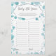 This baby shower game card features a script modern font on aqua blue faux foil dots background, perfect for a baby boy shower.