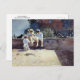 A fine art postcard with the watercolor painting by the American artist Winslow Homer (1836-1910), Boys and Kitten (1873). Three boys sitting on a stone wall with a white cat. A black cat is peeking out from behind the wall.