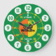 Colorful boys graphic wall clock color coded to help assist your child to read a clock. This colorful teaching aid includes minutes and hours and past and to making child's play of telling the time. Clock color coded in bright yellow, green, orange and white featuring a little white tractor and your name. Clock can be customized with your name of choice. Currently reads William. Would make a great personalized Christmas or Birthday gift. ">www.sarahtrett.