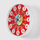 Red boys graphic wall clock color coded to help assist your child to read a clock. This colorful teaching aid includes minutes and hours and color coded past and to's making child's play of telling the time. Designed exclusively by Sarah Trett. A great addition to a little boy's bedroom who is just learning to read a clock face.