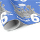 Birthday wrapping paper in blue and grey. Personalize this boys birthday paper with your name and age. Currently reads Choo Choo Adrian 6 today. Uniquely designed by Sarah Trett.