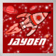 Cartoon graphic rocket space poster. Great to brighten a space themed kids room. Personalise this item with your child's name (up to 6 letters). (***Please note some names will not always fit due to the nature of the font, please contact me and I will be happy to post a poster with your name on). This example reads: “Jayden”. Uniquely designed by Sarah Trett.