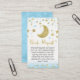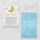 Sweet star and moon themed baby shower book request insert for a little boy. This design features a faux gold heading, a gold glitter moon and gold and blue stars.