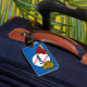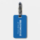 Perfect luggage tag for your little slugger. This baseball-themed bag tag has a baseball, baseball glove, baseball bat and baseball hat on it. The boy's name is written on the baseball. A bright blue background makes it easy to find.