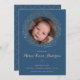 This trendy and beautiful photo birth announcement features a gold floral wreath illustration with the word "blessed" encircling a picture. The photo and text (words and color) can be customized to announce the arrival of your new baby. The background color on the back (shown in navy blue) can also be changed to your liking.