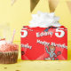Birthday boys wrapping paper in bright red, black, grey and white musical rockstar guitarist design. Personalize this boys star birthday paper with your name and age. Currently reads Happy Birthday Eddie 5 today. Uniquely illustrated and designed by Sarah Trett.