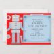 Boys Red Robot Custom Birthday Party Invitations