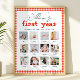 This cute 1st birthday photo collage poster is part of our farm collection for boys. Featuring a rustic red gingham background, it can be personalized with your child’s birth details and 12 monthly photos from their first year. The perfect farm-themed design to celebrate your little farmer’s big milestone!