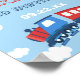 Boys Train Chugga Two Flag Blue Red White Birthday Poster