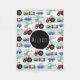 This cute design is a part of a collection featuring cute transport doodles for children's apparel and accessories. The design features colorful hand-drawn transport pattern design (a car, train, tractor and helicopter) on blue stripes, and can be personalized with your boy's name. Perfect for transport loving kids! Check out our store for other cute designs.
