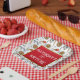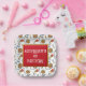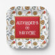 Set against a stark white background, this square paper plate features a bold Viking warrior mask, wooden shield, axe, bow and arrow, sounding horn and a ham. The white text templates are easy to read and customizable with your child’s name, age, and party details. And, the red inlay edged with faux gold makes the wording stand out against the seamless pattern